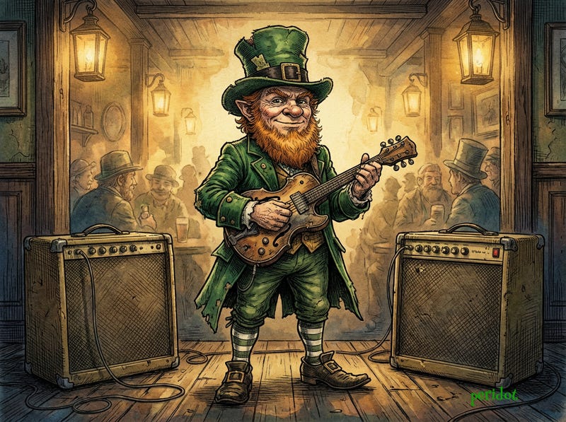 Shortly after the band’s refusal of his request, the itty-bitty apparition disappeared in a puff of emerald smoke. The band shrugged, assuming it was just too much of the St. Paddy’s Day spirits, and finished their set with a rousing rendition of The Boomtown Rats’ “Clockwork.”